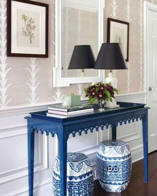 Bright tables and beautiful pottery are a way to dress up your entryway. Most people are afraid to incorporate pieces with color. I guarantee, even if it feels a bit foreign to you, everyone else is going to think you are up to date with the latest style and trends.