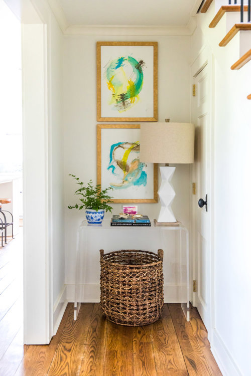 -Small table. If you have the ability, find a small table to place in this space. Functionally, it provides a landing spot for keys...and possibly a cute potted plant or vase.