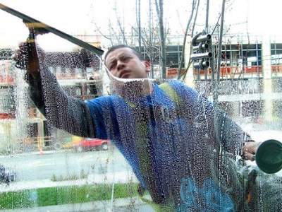 Using a squeegee, make sure all debris is scraped off your windows before you put cleaning material on the glass. Once you put cleaning liquid on the window surface, apply it evenly.