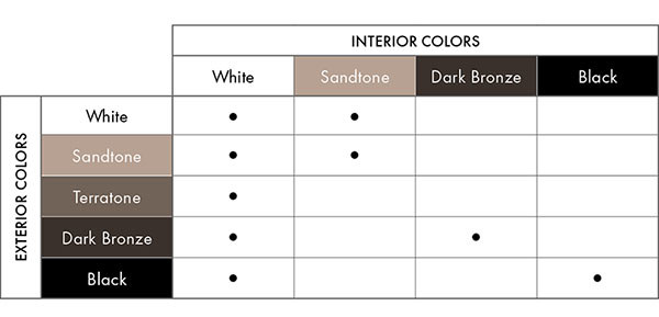 Color is a big deal with windows. Most window manufacturers offer your standard white-interior with white exterior window and sure, you can get that from Andersen, too but you can also get more. Andersen 100 Series windows are factory-finished with a premium matte finish that won’t flake, blister, or peel. Including white Andersen offers 5 total exterior colors. The colors have a deep warm tone, I can’t think of any home that wouldn’t find a suitable window color in Andersen’s palette.