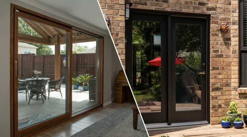 The 400 Series Frenchwood is the best-selling option, and it lets you add blinds to your sliding door. The E-Series French Gliding Patio Door is aluminum on the outside and wood on the inside. The A-Series is the most energy-efficient option, and it’s wood protected by fiberglass.