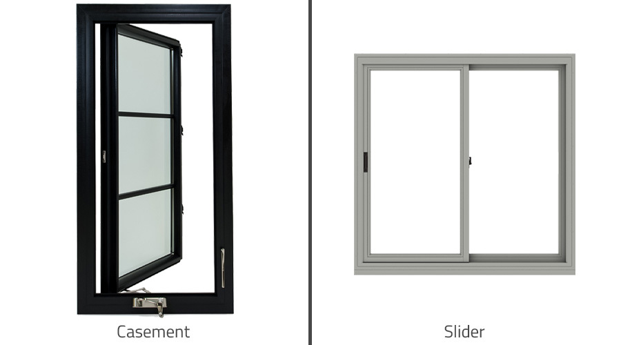 Casement windows are more energy-efficient than sliding windows. Since a sliding window has to have a flexible seal on the top and bottom runners of the window, it can never seal as tightly as a casement window. There will always be a bit of a gap on the top and bottom sash that allows some air through. A casement window does not have to be flexible, and when it closes and locks in place, the window sash seals tightly against the window frame.