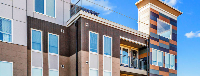 Longboard offers a wide variety of color options and stain finishes which makes it easier to find the right color in mixed material facade buildings. And because Longboard is a Mayne Inc product it is also pretreated to achieve high-performance standards. (Mayne Inc provides powder coating to other architectural manufacturers.)