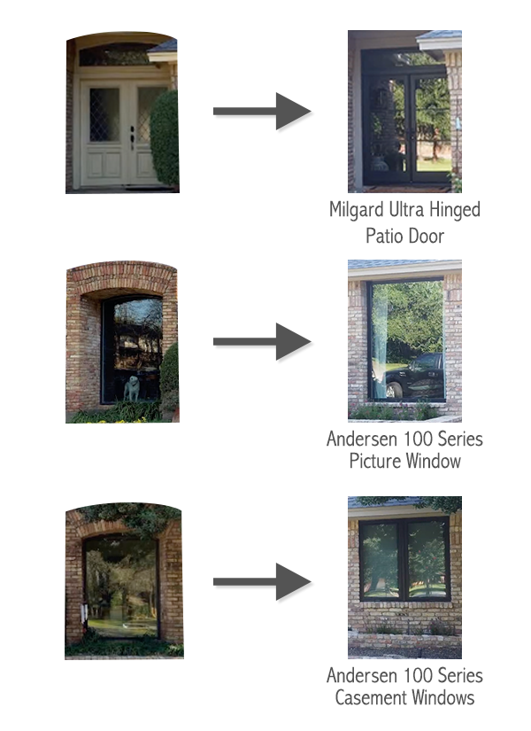 In this project, we used Milgard doors and Andersen windows. Bringing products from these manufacturers together was easy because we bought different products from each brand (windows from one and a door from the other) and they each were installed in separate parts of the house.