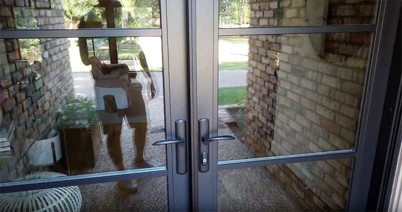 The style of the door was completely different than the clear, sleek, gridless picture windows in the front of the house. In the photo above you can see the only thing really bringing it all together are the arches over the windows and the arched transom.