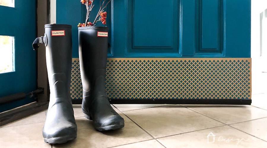 This element is installed at the bottom of your door, to protect against scratches and dents. Structural deformities can not only occur due to your kicking to open the door, but might also be developed by stroller bumps, pet/animal scrapings and so on.