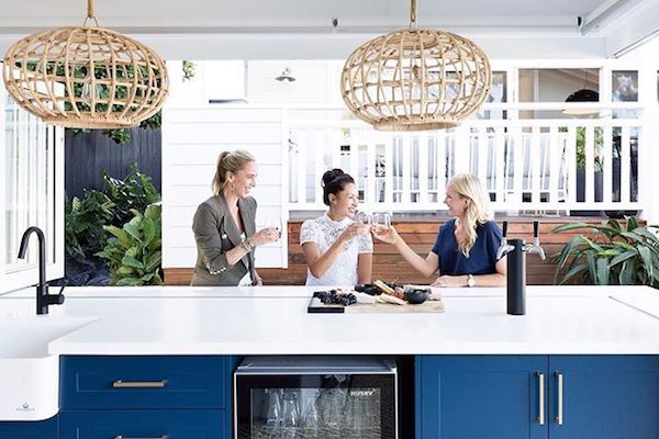 Contemporary homes are often covered in whites and grays, bring some color back with colored cabinets. The cabinets in the photo below look like part of an oversized island but they’re actually located in the interior of a garage wall in a fun Garage-Cabana conversion(↗) by Heliconia(↗), a design group based in Sydney, New South Wales, Australia.