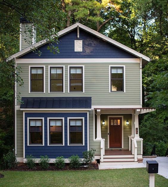 For the next inspiration photo below you’ll have to use a little imagination. Choosing colors for your home’s exterior can be difficult but that shouldn’t hold you back, if Classic Blue is too bold to cover your whole house try it as accents. Imagine the home below with light gray siding, white trim, white windows, and accents of Classic Blue shakes in place of the navy ones. A home like this looks bright and inviting and will be the envy of your neighbors.