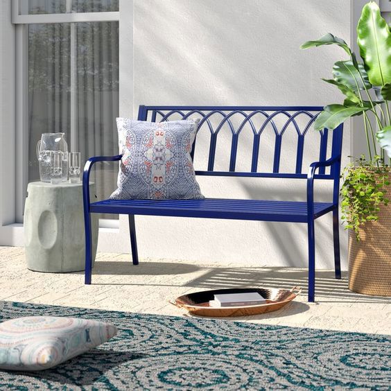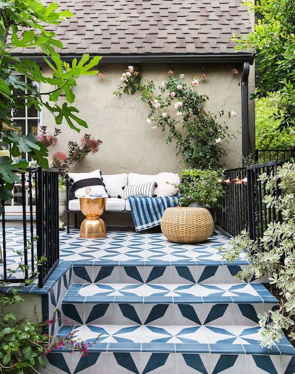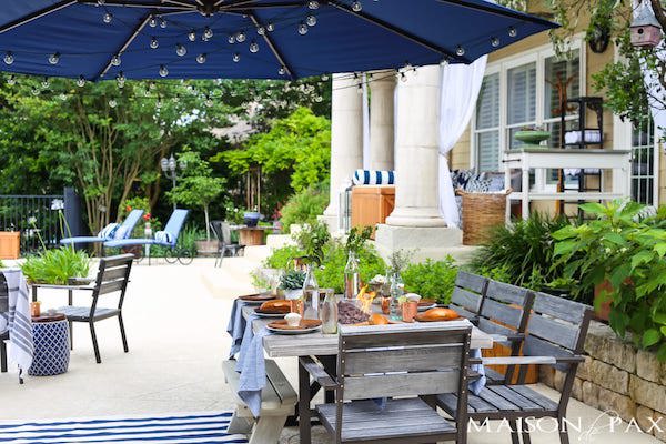 Create your own little paradise in your back yard. Add a seating area with a couple of blue lawn chairs to relax in or go all out with a blue color-themed patio like Rachel Paxton of Maison de Pax(↗).