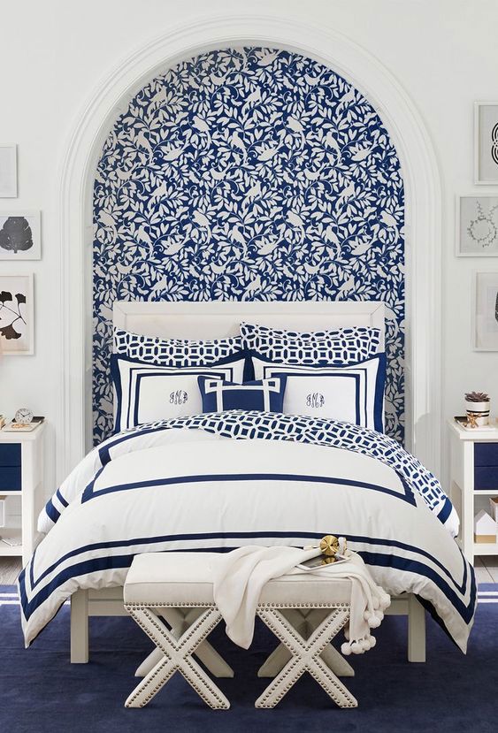 Your bedroom should feel like a sanctuary where you can relax, rest, and reset. The bedrooms below use blue in different ways that can inspire your room design. Use blue as an accent or as a focal point.