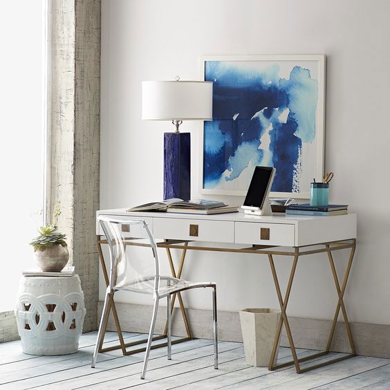 In addition to creating a sense of serenity, blue can also help you feel focused making it the perfect color for an office. Bring blue into your office space by adding some blue decor, wall art, or chairs.