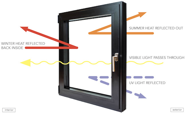 Low-E window glass is glass with a low level of emissivity, also known as the ability of a material to emit energy as thermal radiation. By utilizing a thin, transparent coat, Low-E window glass reflects heat while allowing as much natural light as possible to pass through the window itself. Low-E also means that a house’s temperature can consistently reflect the interior temperatures inside while blocking exterior temperatures from passing through the glass (for a broader explanation, see our post on Low-E Window Glass).