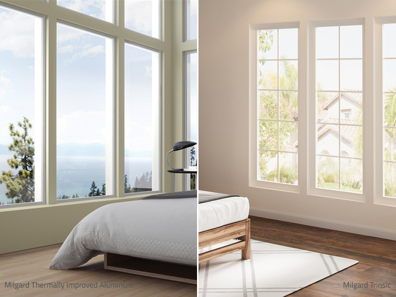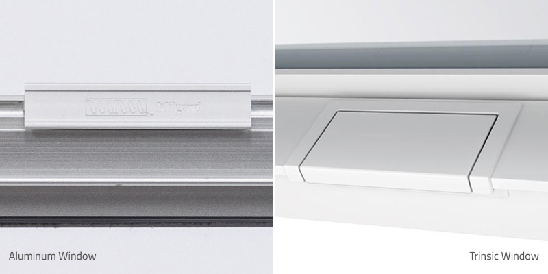 Trinsic windows and Aluminum windows are made from completely different materials. Trinsic windows are made from vinyl while Aluminum windows are made from a thermally-improved aluminum.