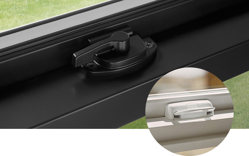 There are two types of locking mechanisms available on Ultra windows. You can choose the standard Positive Action lock (pictured above in white) or a cam lock. Cam locks are found on many windows but don’t offer the easy of Positive Action locks. Both options look beautiful on the window and match the interior color of the frame.