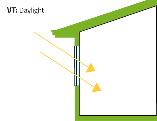 VT indicates how much visible light is transmitted through a window. It tells us how well a product is designed to light a home with natural light.