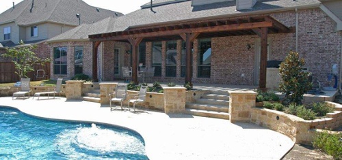 Placing a pergola next to the house is a great way to bridge the area between the house and the pool, like in this project. This kind of setup is great when you want to sit out under the shade while you watch the kids swim, but also want to peer through the windows every now and then to check the score of the Rangers game.