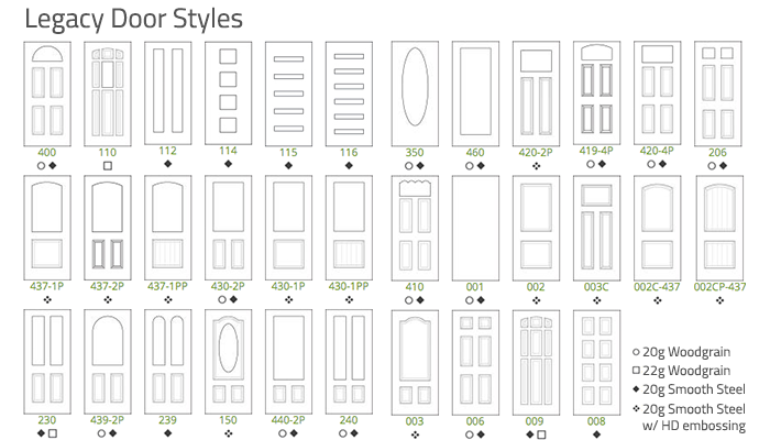 The current Legacy door features composite top endcaps for rigidity and energy efficiency; special adhesives that act as a thermal barrier to reduce heat and cold transfer; a tab and slot system of mechanical interlocks on the lock stile that strengthens the door; and the face skin of the door is a continuous piece of 20-gauge steel.