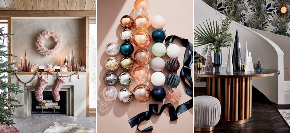 Collage of CB2 holiday decor inspiration, original images from CB2(↗).
