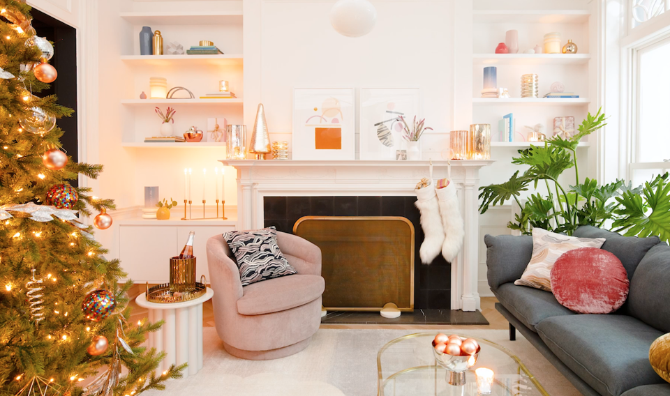 Glitzy, cozy, and warm Christmas spaces, original images from Pier 1(↗).
