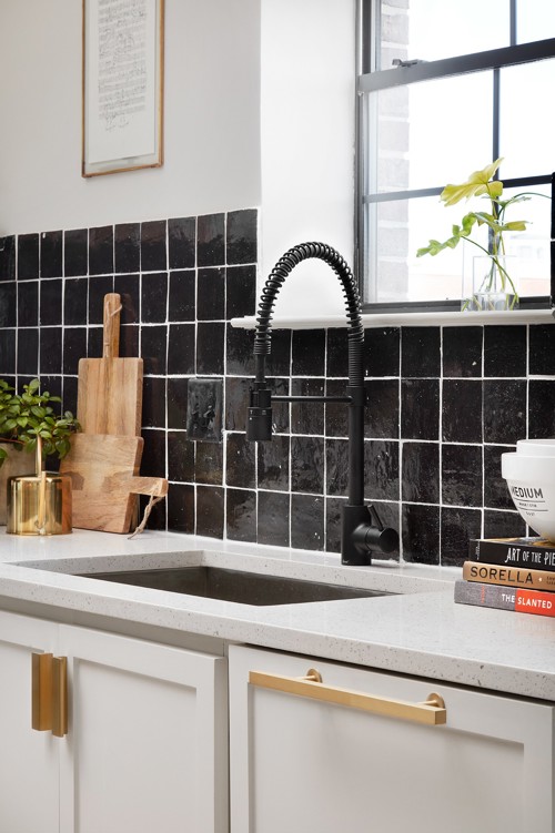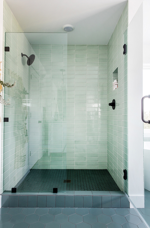Check out the subtle sheen of this tile. The brick lay pattern paired with a brilliant tile has style written all over it.