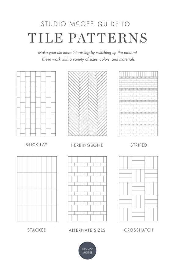 To begin, though, you must choose a pattern. Below is a great tool from Studio McGee that shows a few popular tile patterns.