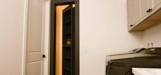 These laundry room shelves are actually a jib door.