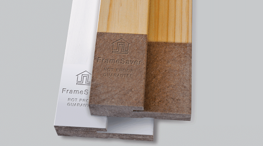 Their strength and rot-resistance has made Framesaver an increasingly popular door frame option in recent years, and it's definitely worth considering. The Framesaver material is actually just located at the bottom portion of the door frame, the part that is most likely to be exposed to sitting or dripping water. Framesaver also comes backed by a fully-transferable lifetime limited warranty.