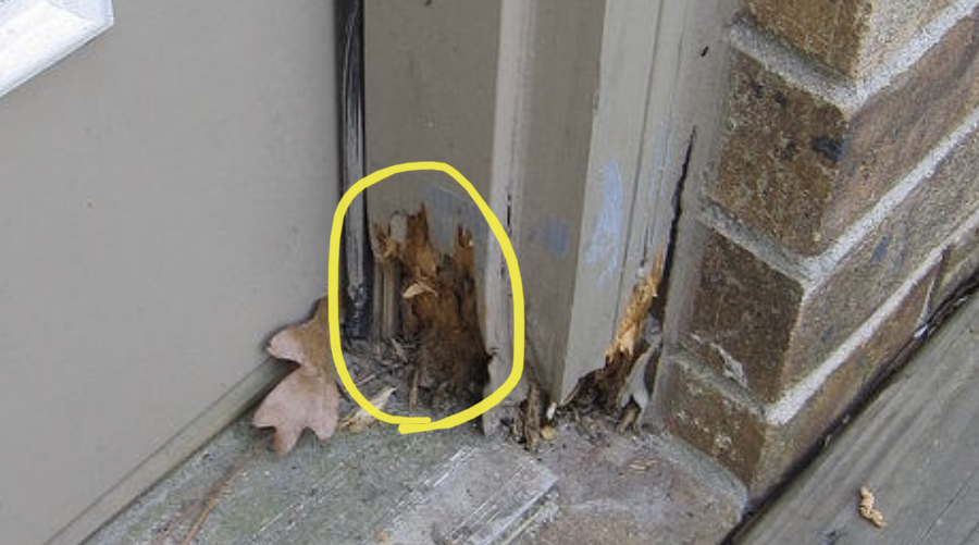 In the long run, just about any component of your home that is made of wood and exposed to the elements is susceptible to rot. Wood has a natural tendency to wick water, which can cause it to swell, mold and rot over time. Door frames are especially vulnerable along the bottom of the door, as moisture from rain slides down the door frame and settles at the bottom.