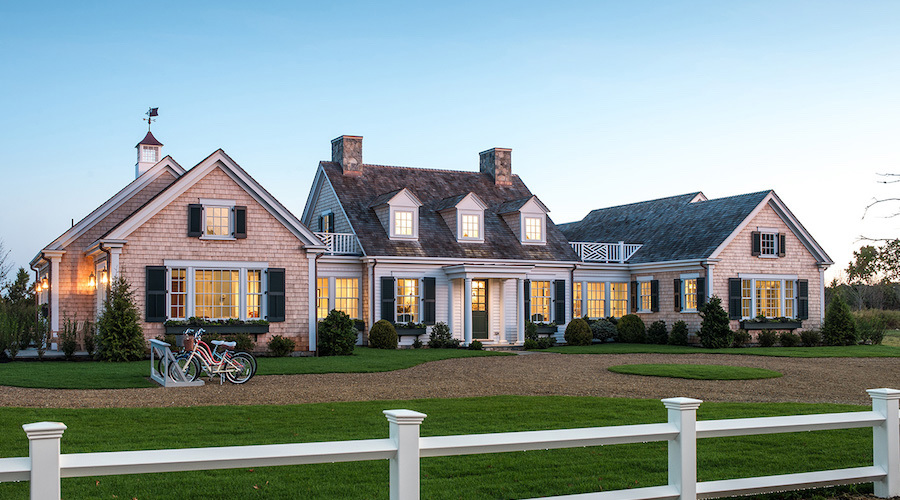 Patrick Ahearn's↗ 2015 HGTV Dream Home is a Cape Cod home↗ on steroids. While bursting with elegant additions, the house is still loyal to the simple and symmetrical Cape Cod characteristics. By looking at this lavish home, you can see that the middle structure could stand on its own as a Cape Cod example. The extensions on either side continue the living area and bedrooms. The dormer gabled windows allow natural lighting to flood into the double volume living area from the inside.